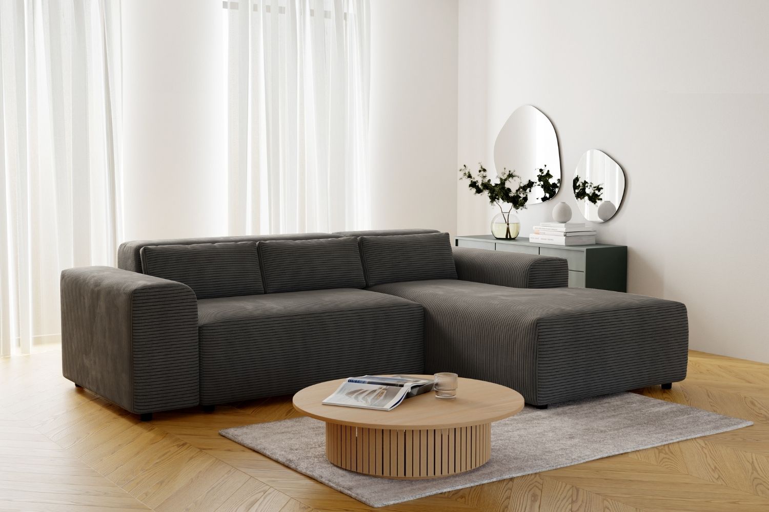 Canapé MORIS Côtelé Gris Anthracite