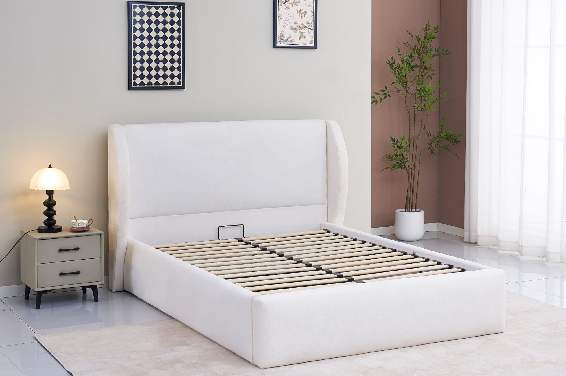 Plongez dans l'élégance du Lit Coffre Porto , une pièce au design doux et contemporain, sublimée par son revêtement en tissu beige. Ce lit allie à merveille esthétique épurée et fonctionnalité bien pensée, pour transformer votre chambre en un cocon chaleureux et raffiné.