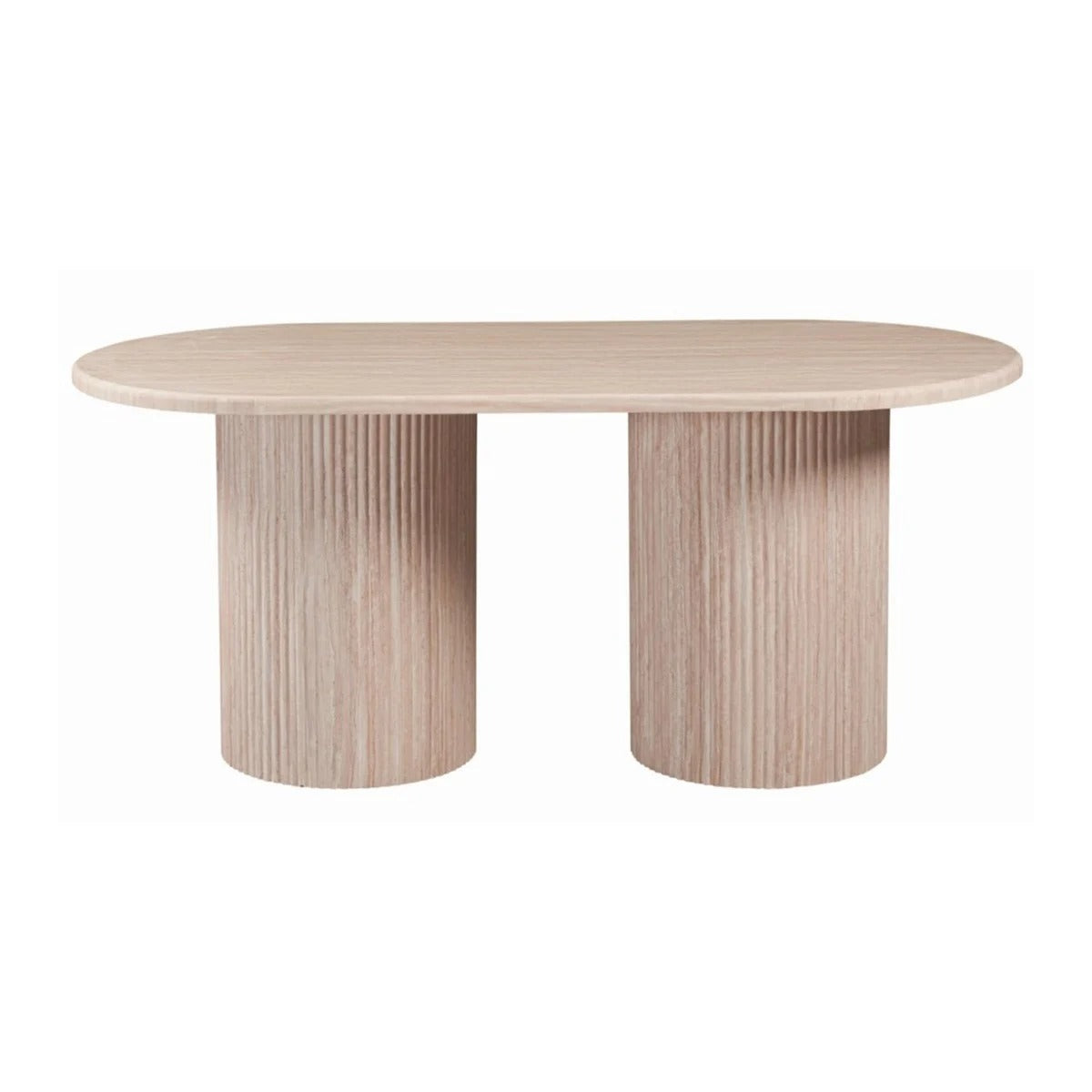 La table à manger **Flintstone Dining** en effet travertin est une pièce exceptionnelle qui incarne le luxe et l’élégance.